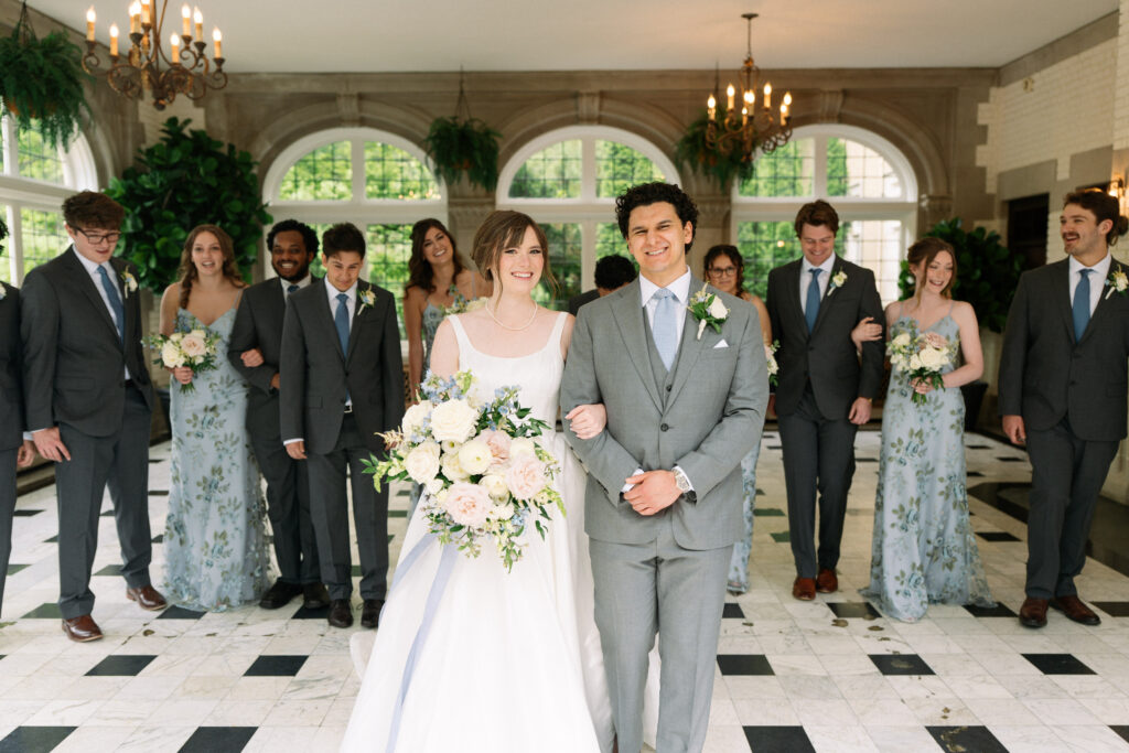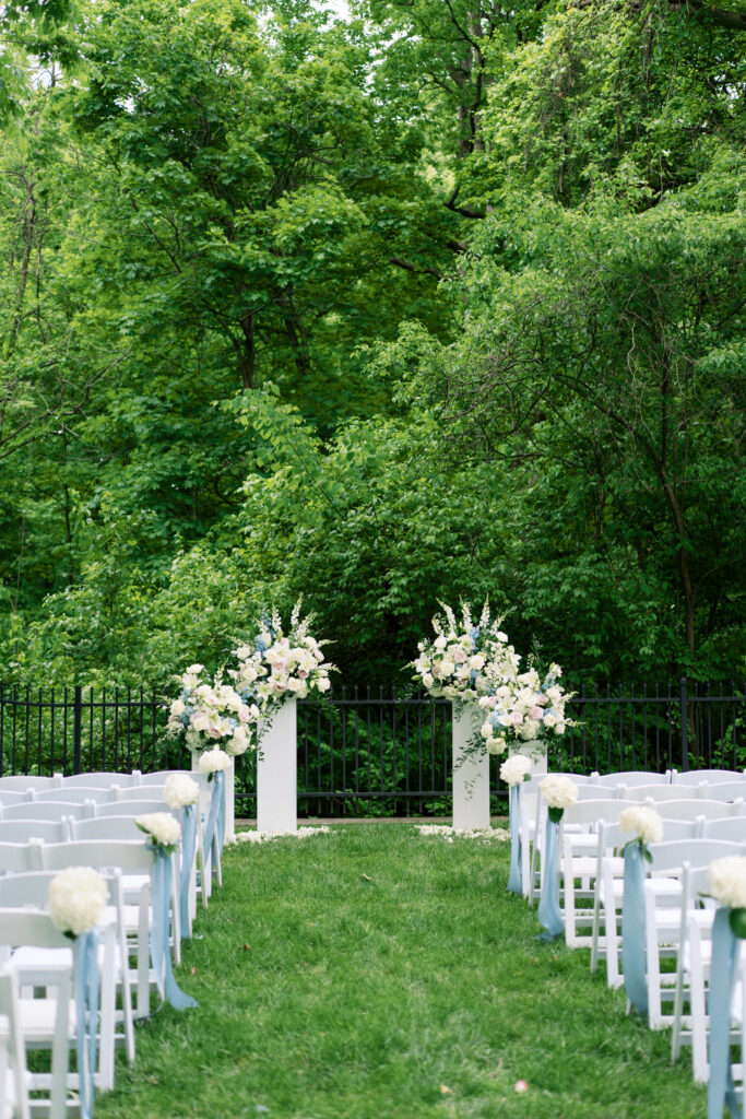 Hannah and Aaron’s springtime wedding at Laurel Hall in Indianapolis was a beautiful celebration of love, elegance, and timeless charm. Surrounded by the lush greenery of the estate, their outdoor ceremony set the perfect tone with a soft color palette of baby blue, creams, and whites. The couple’s classic style carried through to their indoor dinner, where guests dined under the glow of candlelight, followed by an unforgettable evening of outdoor dancing under the stars. With every detail thoughtfully planned, their day was a perfect blend of romance and joy, making it a truly unforgettable event. I hope you enjoy these gorgeous photos from Courtney Sinclair Photography.